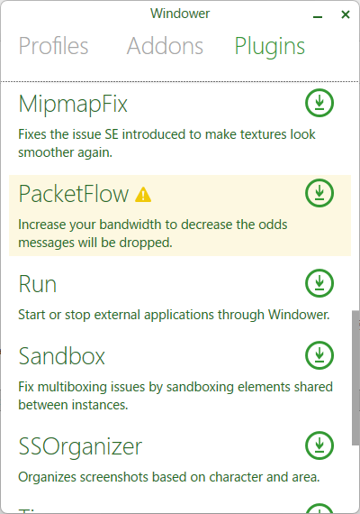 • WindowerランチャーのPluginsからダウンロードし、有効にします。